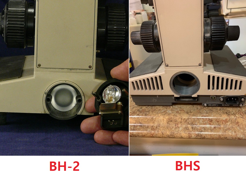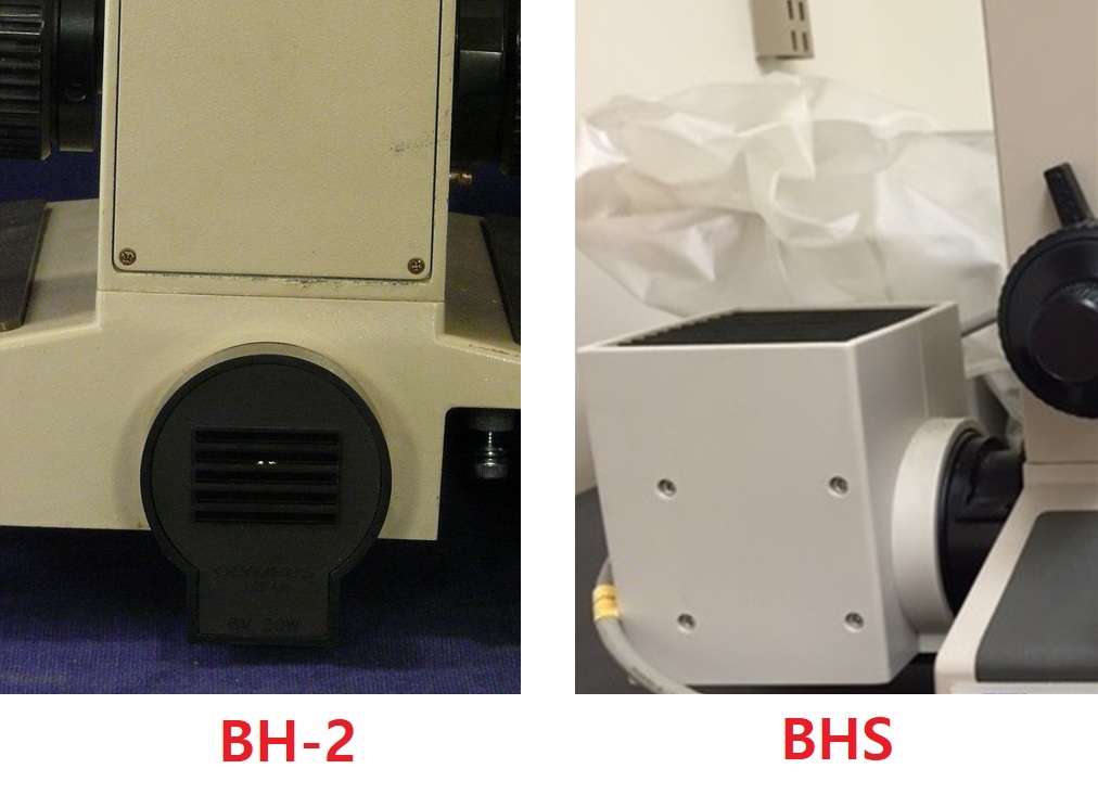 Warning – This illuminator is for the BH-2 microscope with the 30W OEM halogen lamp. It is NOT for the BHS microscope, which uses a 100W halogen lamp. The BH-2 microscope is only labelled BH-2, but the BHS is labeled both BH-2 and BHS in different locations on the microscope.
